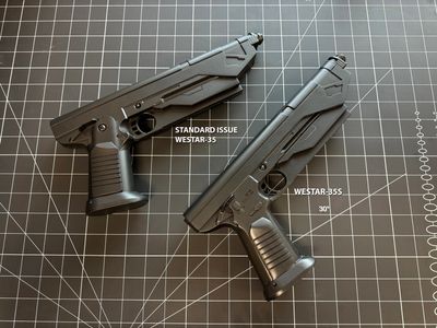 The Westar-35 has easily become the standard across the galaxy for reliability, accuracy and takedown power. We have masterfully molded and cast these blasters in Hyperfirm rubber to capture high detail while providing near indestructibility. Perfectly balanced and weighted for costumers and trooping.
